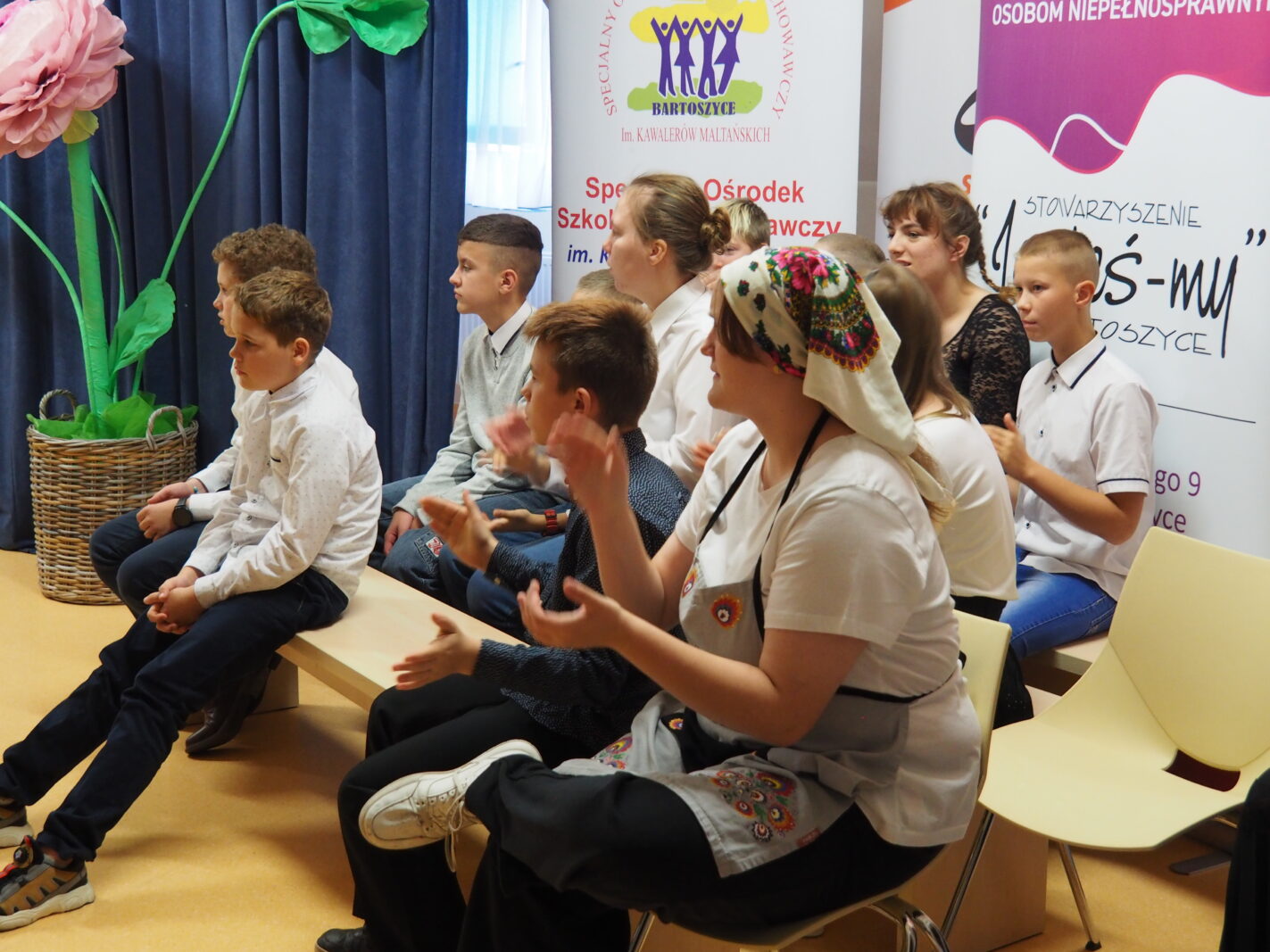Następnie scena rozbrzmiała talentem młodych artystów. W programie znalazły się występy artystyczne – od śpiewu i recytacji po układy taneczne – które były owocem ciężkiej pracy i terapii prowadzonej w Ośrodku. Swoje umiejętności zaprezentował również chór Pasjonata, który tworzą nauczyciele i nauczycielki SOSW.