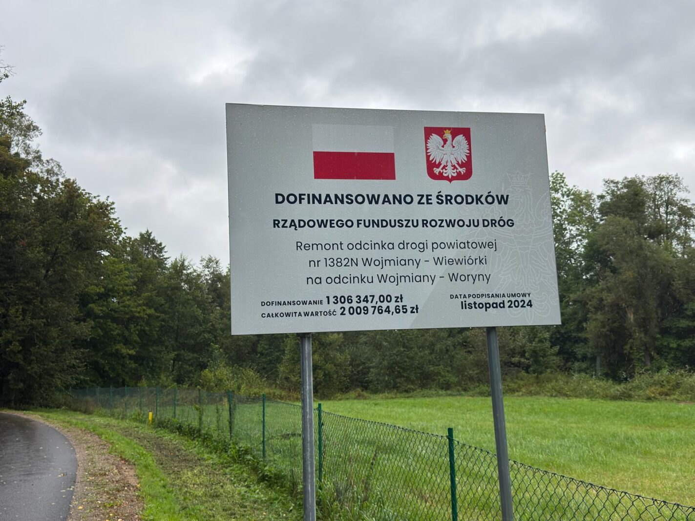 Dziś, 11 września 2025r. dokonano otwarcia trzeciego, a zarazem ostatniego etapu przebudowy drogi powiatowej nr 1382N Wojmiany – Wiewiórki na odcinku drogi Wojmiany – Woryny o długości 2,172 km.