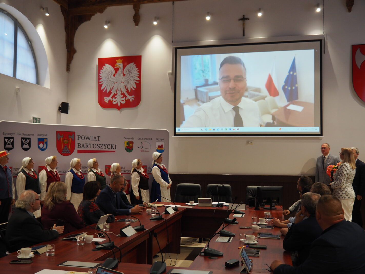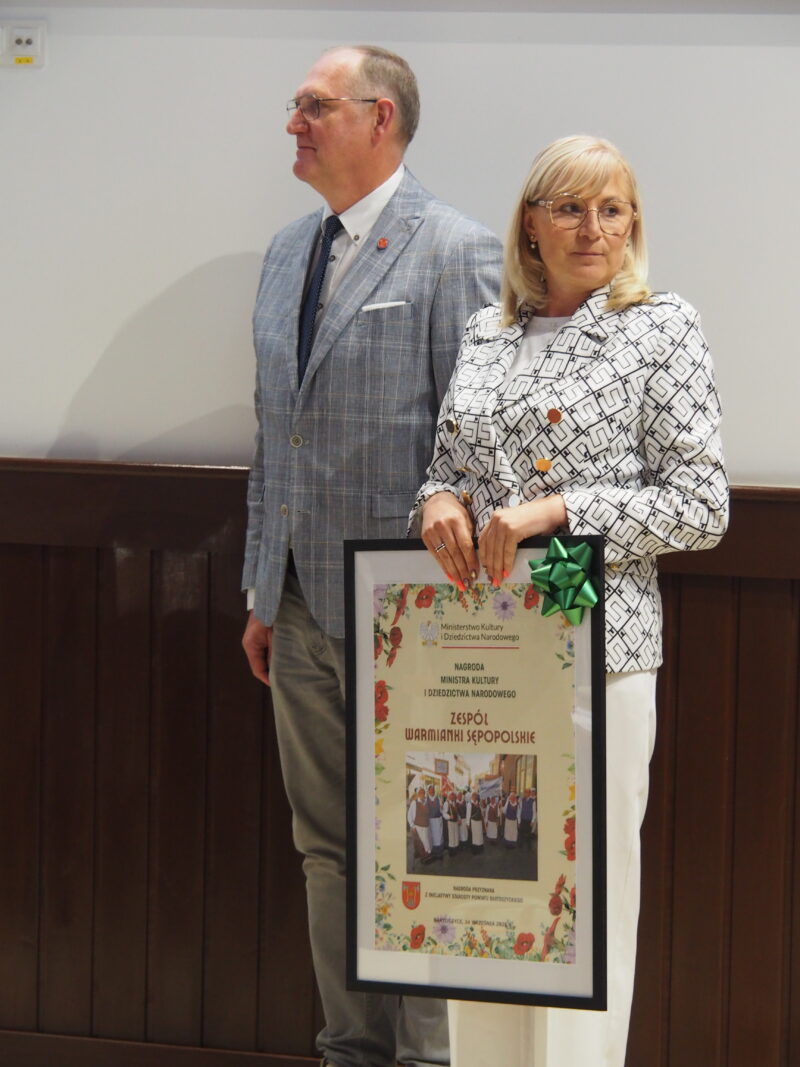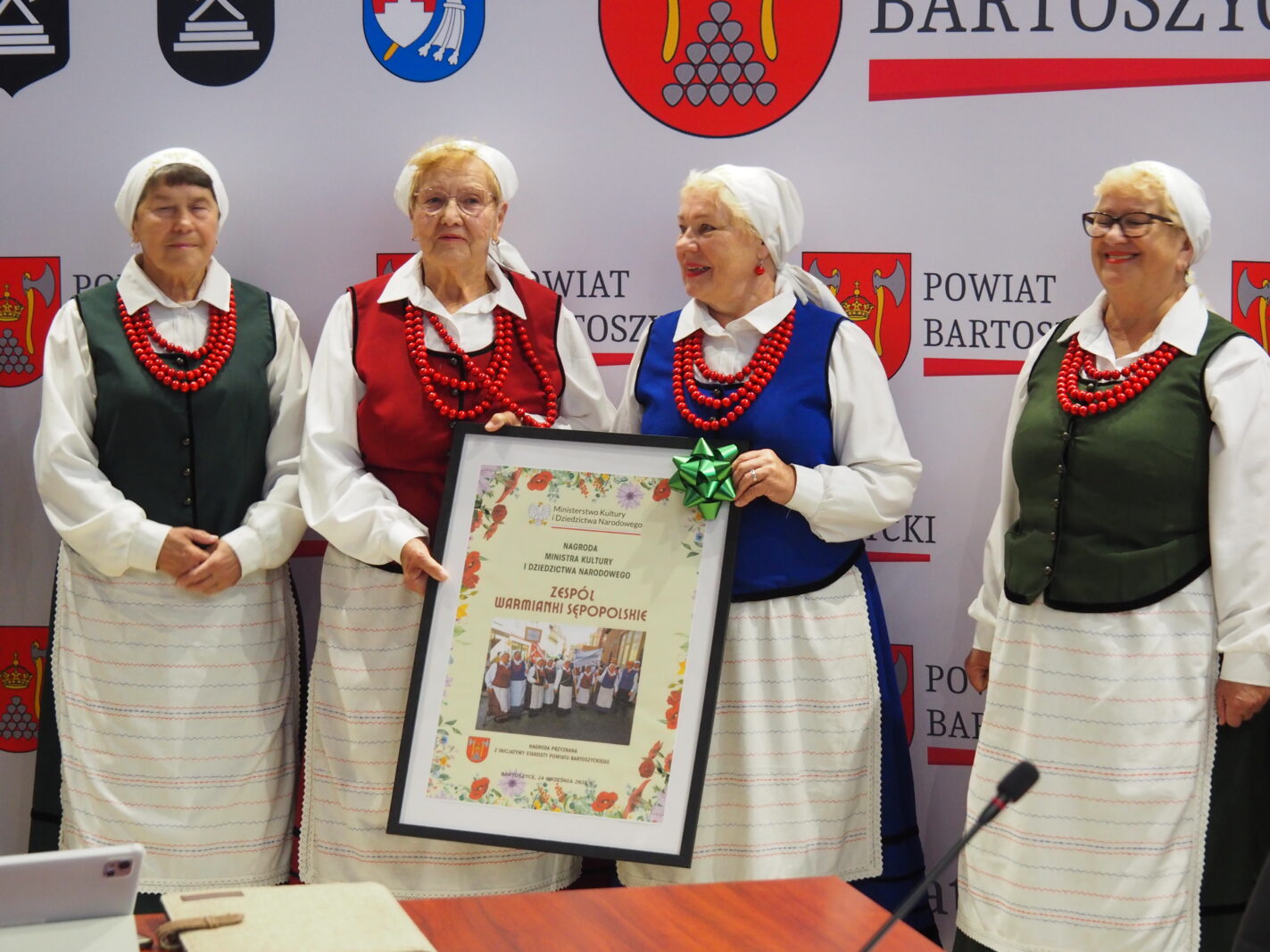 Podczas sesji Rady Powiatu Starosta Elżbieta Zabłocka wręczyła nagrodę okolicznościową przyznaną przez Ministra Kultury i Dziedzictwa Narodowego – Zespołowi Warmianki Sępopolskie.